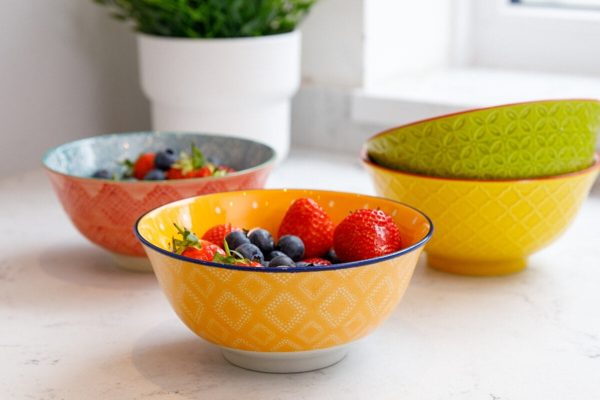 Bowls for numerous uses. Love the colours as they seem to fit with everything.