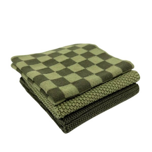 Ecovask Dishcloth Variety 3pk Olive Pistachio Chequer