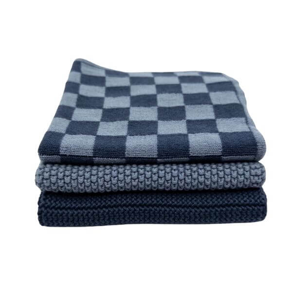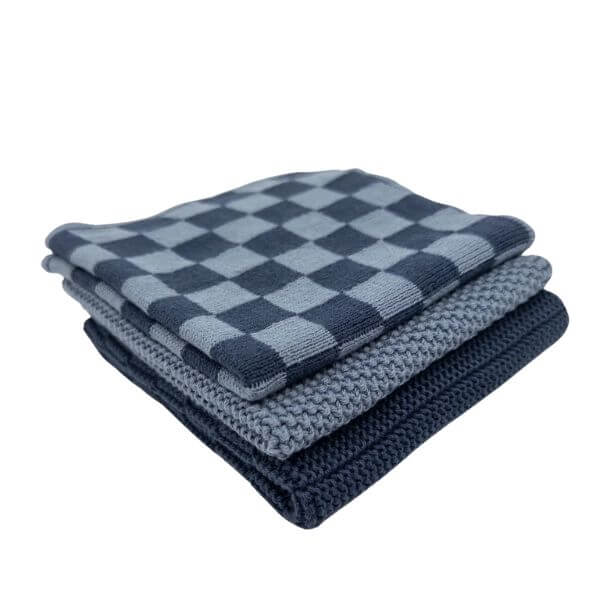 Ecovask Dishcloth Variety 3pk Navy Denim Chequer