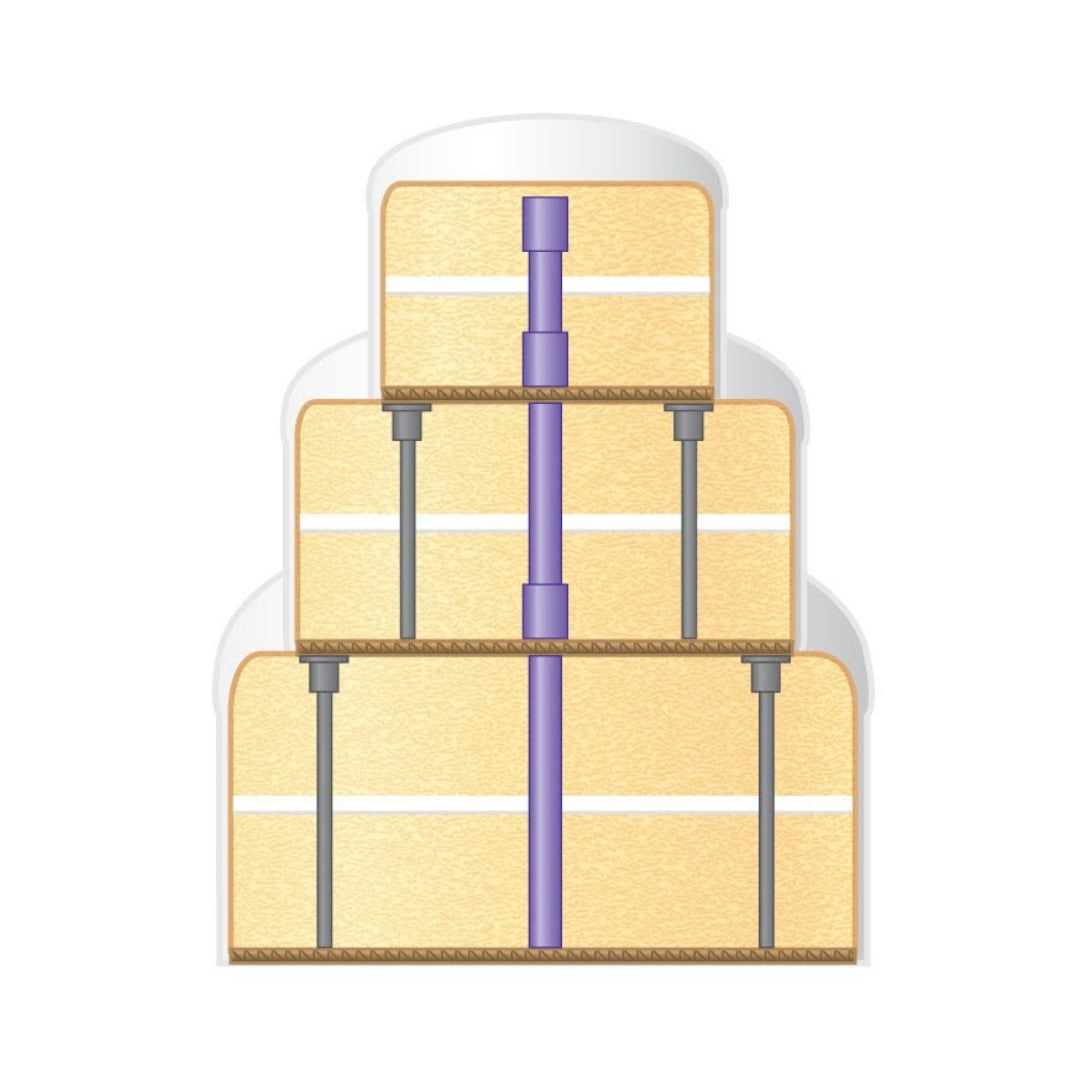 Plastic rods keep cake tiers more stable than traditional dowel rods and lock in place