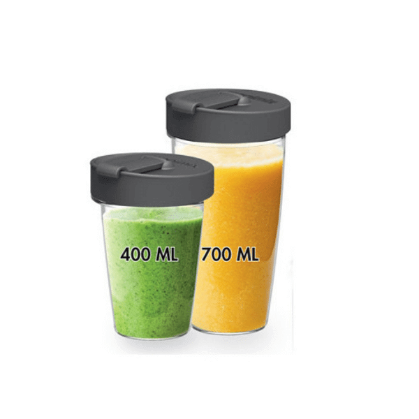 Blend and go with 2 BPA-free and dishwasher safe Magimix BlendCups (700ml & 400ml), each with a watertight lid ensuring no spills. (Please note this kit excludes a Magimix Blender)