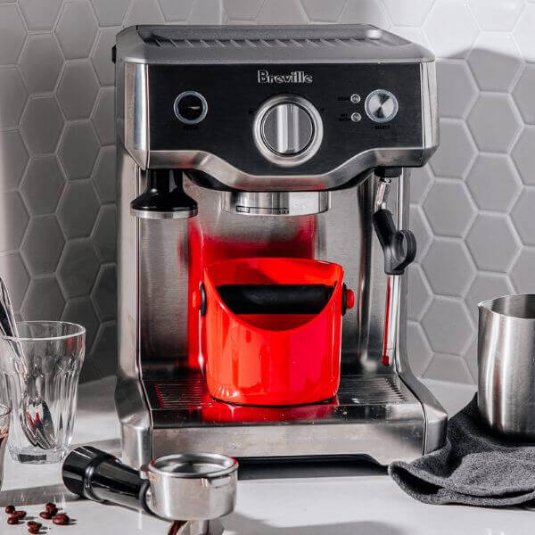 Specifically designed to be stored on the espresso machine’s drip tray (under the group head), Grindenstein’s unique height reduces clutter on the kitchen bench top and fits easily in the top rack of the dishwasher.