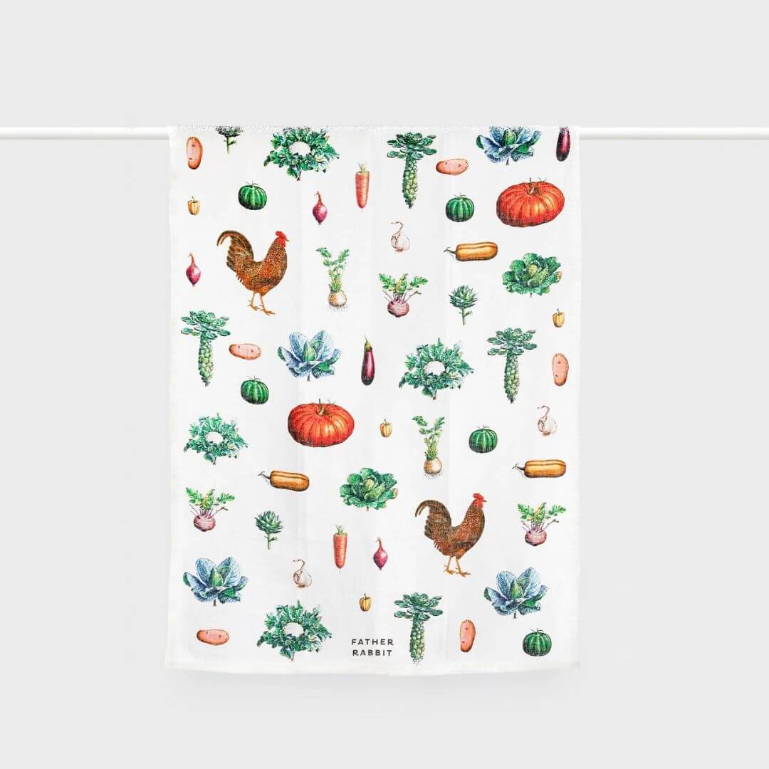 Father Rabbit Linen Tea Towel Vintage Vegetables
